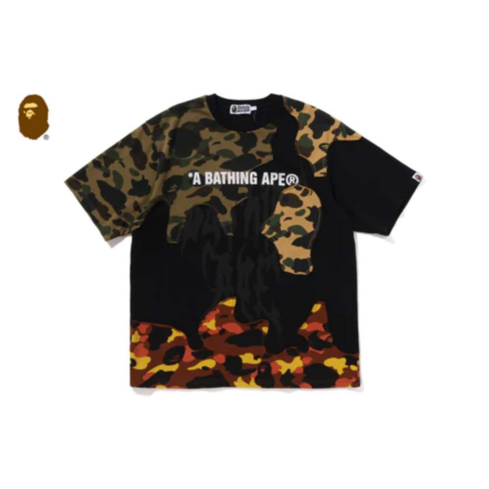 베이프 1ST 카모 업사이클 로고 릴렉스핏 티셔츠 블랙 1L80109302