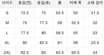 사이즈는 측정 방법에 따라 기재된 치수와 약간의 차이가 있을 수 있습니다.