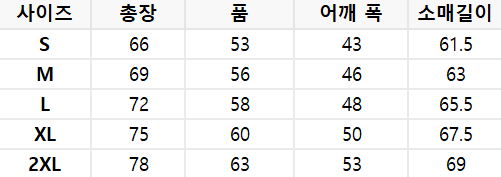 사이즈는 측정 방법에 따라 기재된 치수와 약간의 차이가 있을 수 있습니다.