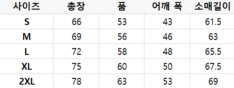 사이즈는 측정 방법에 따라 기재된 치수와 약간의 차이가 있을 수 있습니다.