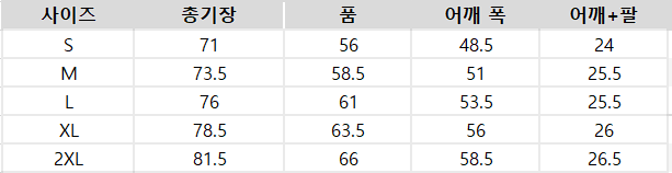 사이즈는 측정 방법에 따라 기재된 치수와 약간의 차이가 있을 수 있습니다.
