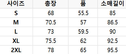 사이즈는 측정 방법에 따라 기재된 치수와 약간의 차이가 있을 수 있습니다.