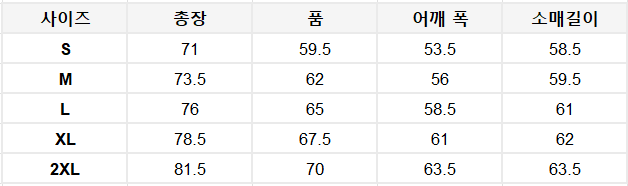 사이즈는 측정 방법에 따라 기재된 치수와 약간의 차이가 있을 수 있습니다.