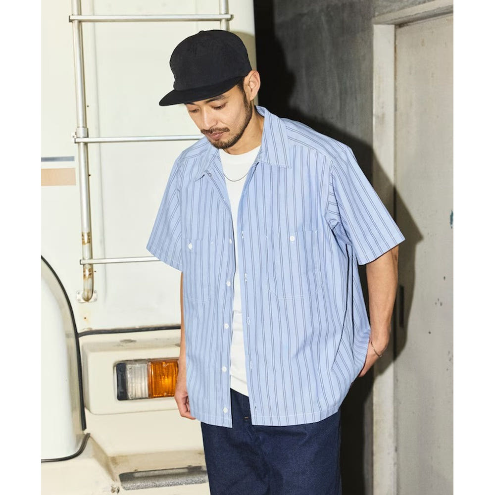 프릭스스토어 레드캡 별주 브로드 레지먼트 스트라이프 크롭 기장 워크셔츠 3컬러 1006311600011