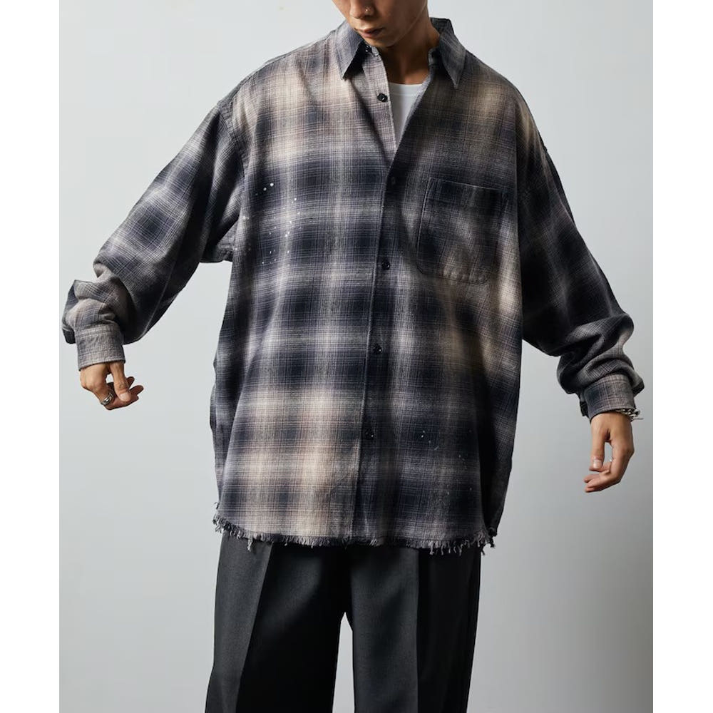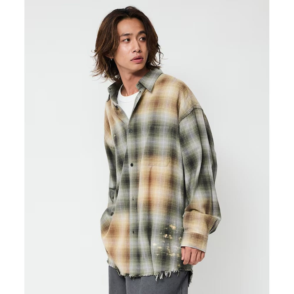 프릭스스토어 릴랙스핏 블리치 가공 옴브레체크 넬 셔츠 5컬러 1201248900280