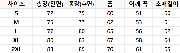 사이즈는 측정 방법에 따라 기재된 치수와 약간의 차이가 있을 수 있습니다.