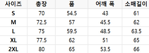 사이즈는 측정 방법에 따라 기재된 치수와 약간의 차이가 있을 수 있습니다.
