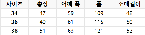 사이즈는 측정 방법에 따라 기재된 치수와 약간의 차이가 있을 수 있습니다.