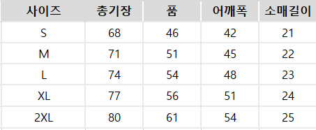 사이즈는 측정 방법에 따라 기재된 치수와 약간의 차이가 있을 수 있습니다.