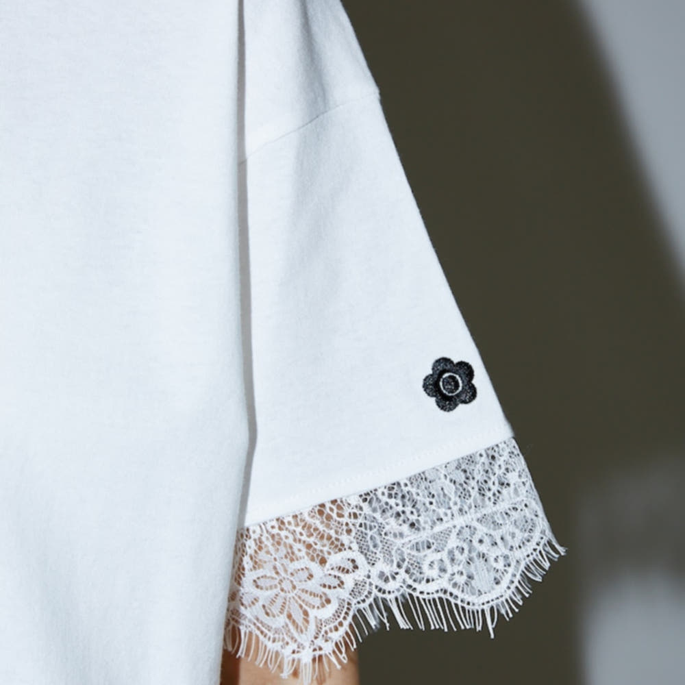 퍼블럭스XMARY QUANT 소매 레이스 플로키 로고 티셔츠 2컬러 3223375300008