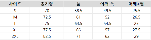 사이즈는 측정 방법에 따라 기재된 치수와 약간의 차이가 있을 수 있습니다.