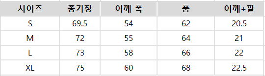 사이즈는 측정 방법에 따라 기재된 치수와 약간의 차이가 있을 수 있습니다.