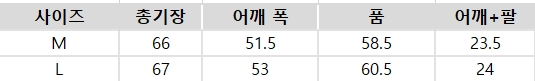 사이즈는 측정 방법에 따라 기재된 치수와 약간의 차이가 있을 수 있습니다.
