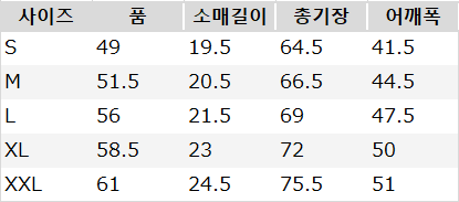 사이즈는 측정 방법에 따라 기재된 치수와 약간의 차이가 있을 수 있습니다.