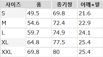 사이즈는 측정 방법에 따라 기재된 치수와 약간의 차이가 있을 수 있습니다.