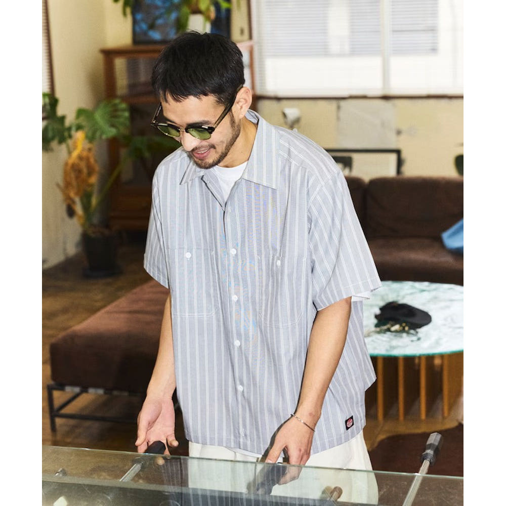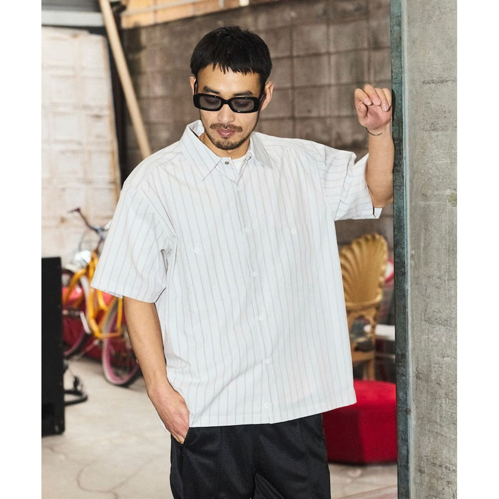 프릭스스토어 레드캡 별주 브로드 레지먼트 스트라이프 크롭 기장 워크셔츠 3컬러 1006311600011
