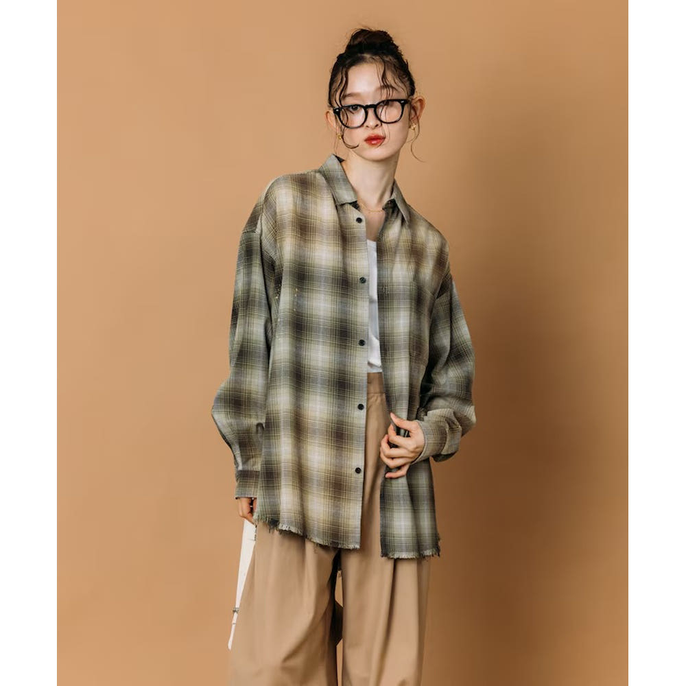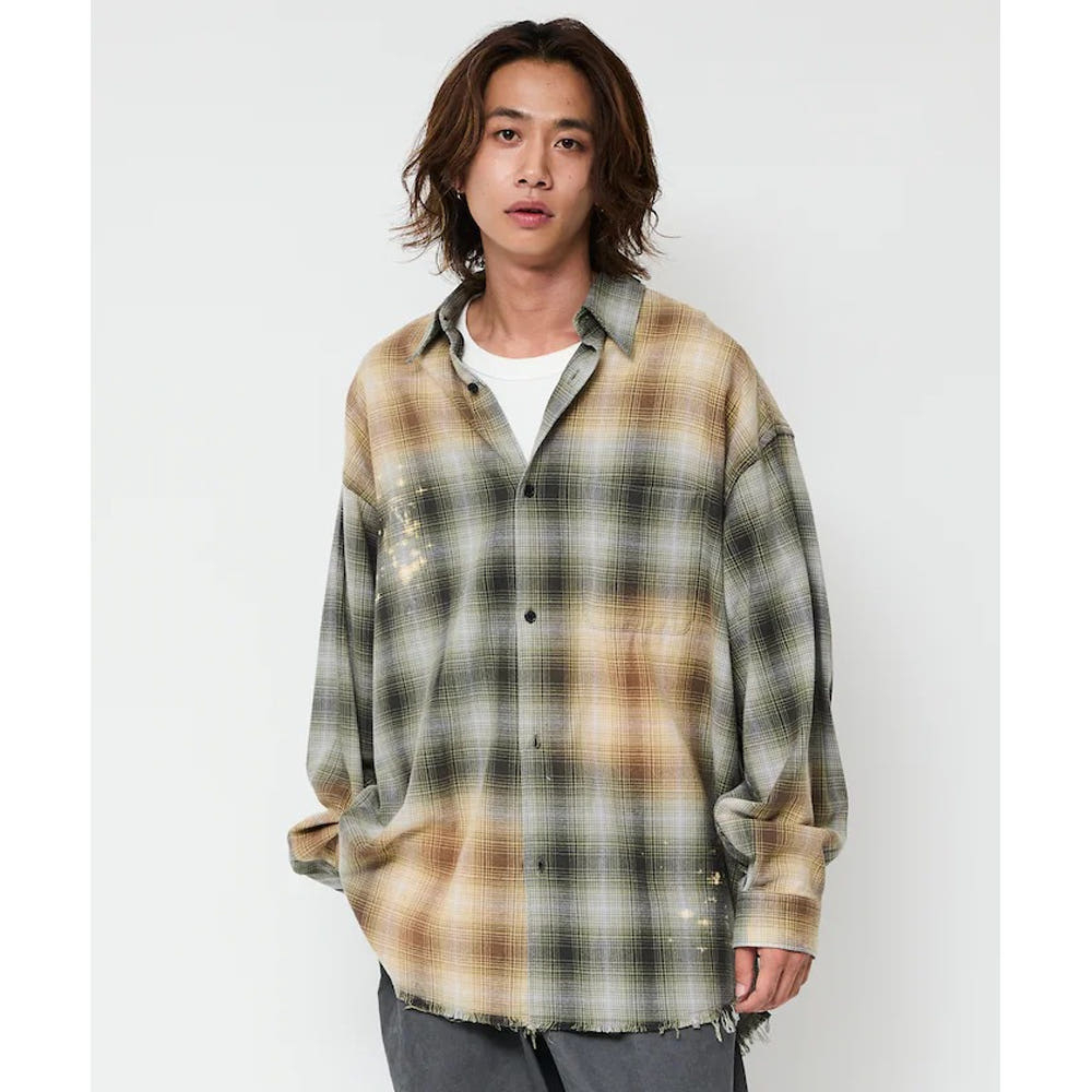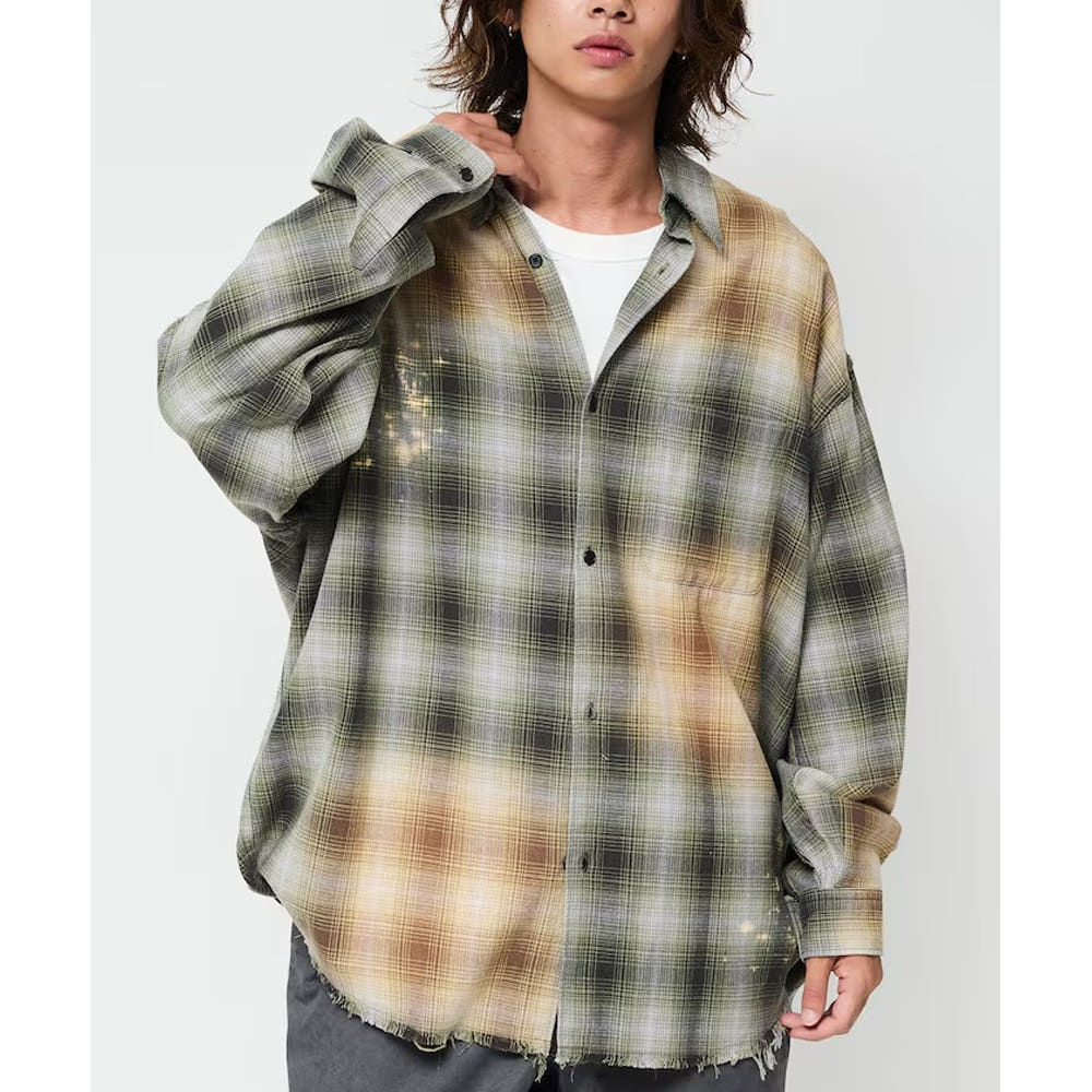 프릭스스토어 릴랙스핏 블리치 가공 옴브레체크 넬 셔츠 5컬러 1201248900280