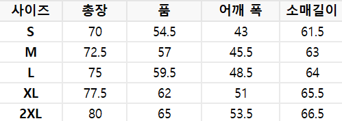 사이즈는 측정 방법에 따라 기재된 치수와 약간의 차이가 있을 수 있습니다.